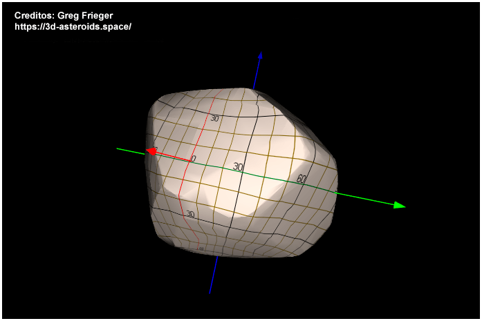 La imagen siguiente, es el modelo 3D, obtenido a partir de diversas mediciones, con las cuales obtuvieron su curva de luz. Los ejes no corresponden necesariamente a los reales