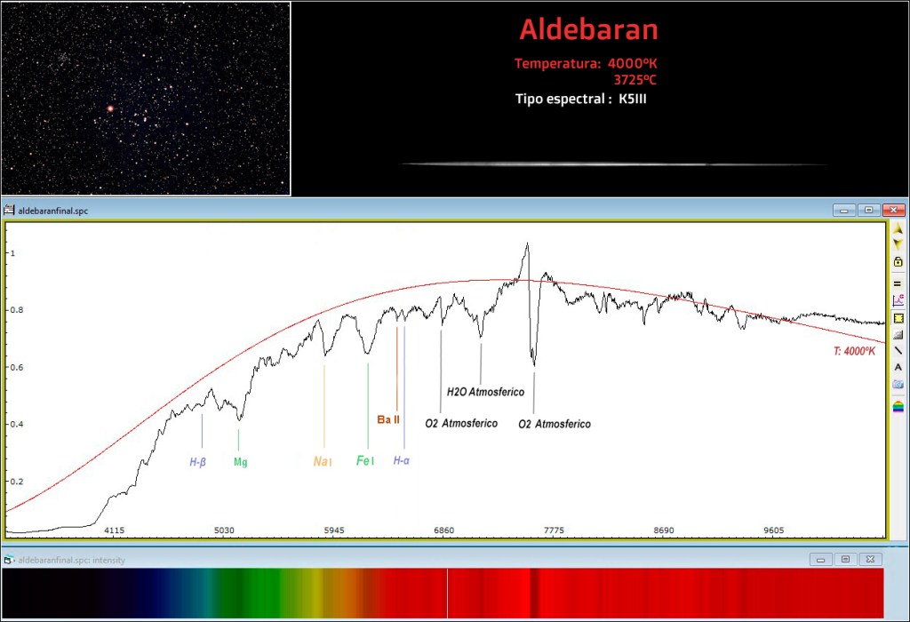 En el espectro podemos ver que la curva teórica de temperatura, corresponde bastante bien con la medida por métodos profesionales, también se ve la baja absorción en las líneas que corresponden al Hα y al Hβ, habiendo bandas más pronunciadas en la zona correspondientes a elementos y compuestos como Fe, Na y Mg entre otros y que no se consiguen resolver dentro de ellas.