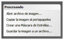En el campo de procesado, nos encontraremos «Abrir archivo de imagen», este nos permitirá abrir una imagen para poder tratarla, esto es, luminancia, niveles etc.., solo permite abrir imágenes en archivo TIFF, FIST, o los guardados con el formato DSS. He de decir, que DSS no es un programa pensado para edición fotográfica, para eso hay otros con más funciones y más potentes para ello (Photoshop, Pixingsht, Startools… etc), pero si lo deseamos, nos permitirá hacer algún ajuste con el.