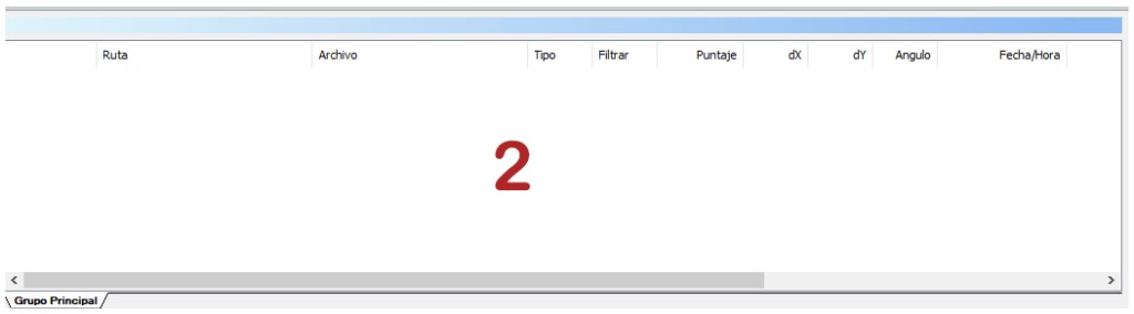 En el Área 2, nos aparecerán las listas de archivos con los que trabajaremos y datos sobre las distintas imágenes.