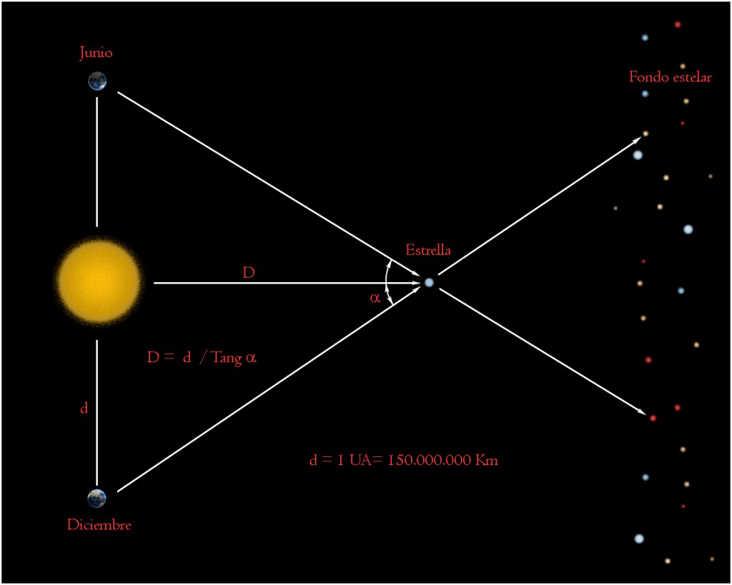 Los primeros intentos para conseguir medir estas distancias, ya comenzaron en el siglo XVIII (James Bradley), pero los instrumentos de la época no permitieron realizar medidas con ellos. Estos intentos fueron hechos mediante el método de la paralaje, que consiste en medir el Angulo que se desplaza, un objeto contra el fondo cuando lo vemos desde diferentes lugares… que en nuestro caso, será el Diámetro de la orbita Terrestre.